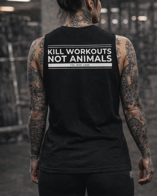 KILL WORKOUTS NOT ANIMALS - Sleeveless Oversized Tee